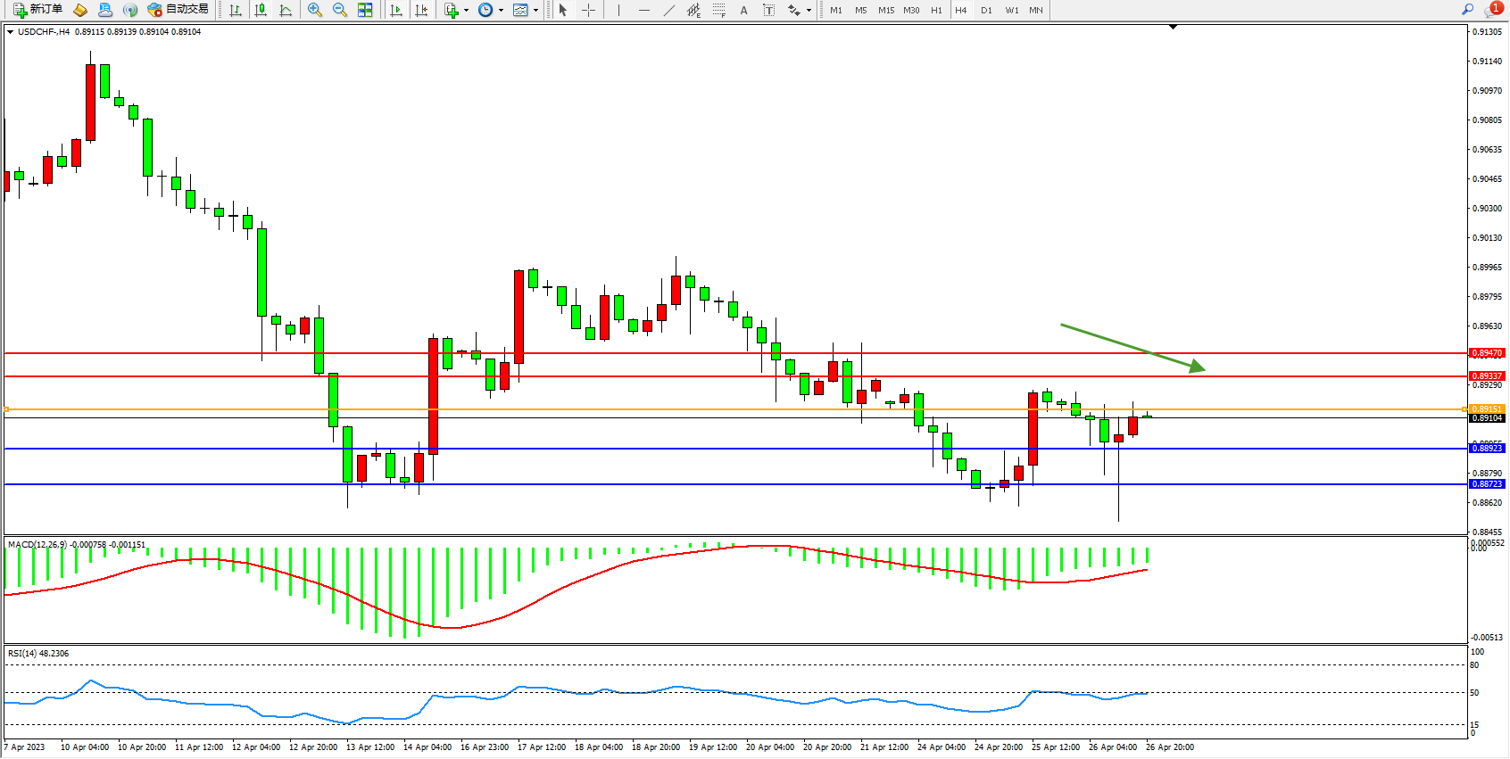 交易策略:0.89151下方看跌,目标0.88923 0.88723