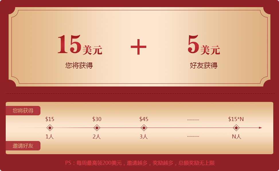 (4)邀请人每周邀请奖励最高可累计获得200美元,邀请人和被邀请人获取的奖励可直接用于提现或交易。